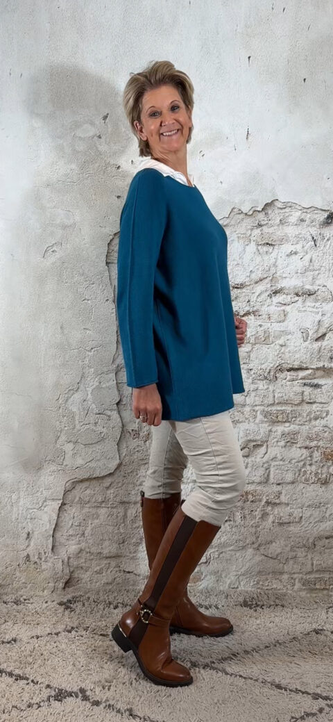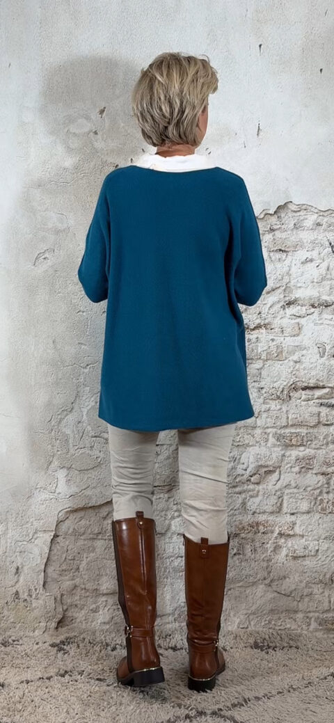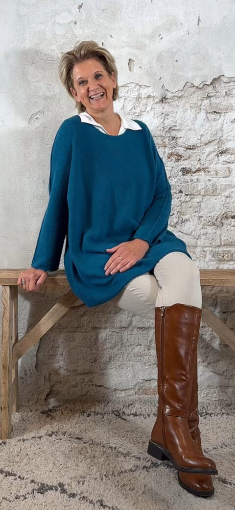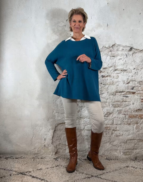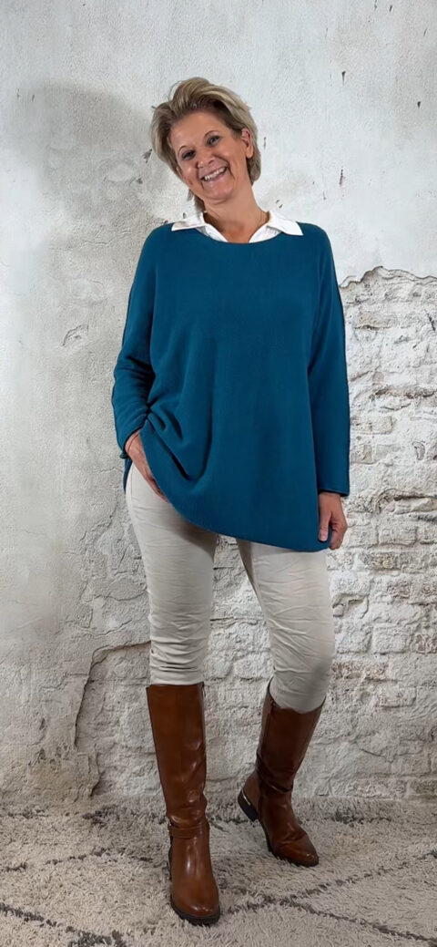 De Iris Oversized Basic Pullover in petrol is een zachte, soepelvallende trui met een relaxte, oversized pasvorm — comfortabel, stijlvol en moeiteloos te combineren 💫