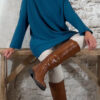De diepe petrolkleur geeft een chique accent aan elke outfit — perfect met jeans of coated broek voor een casual, stijlvolle look.