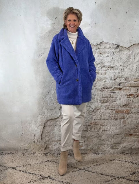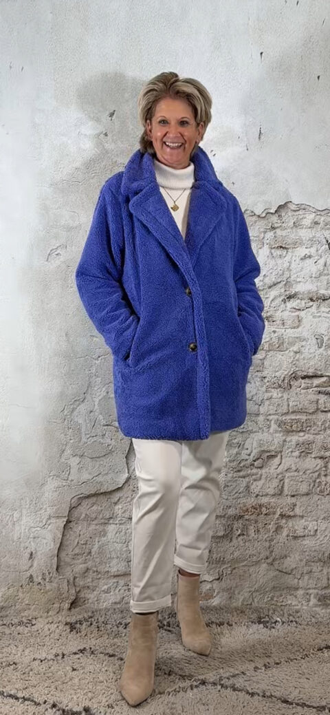 De Iris Teddy Blazerjas is de perfecte mix van blazer en jas. De zachte teddy-stof geeft hem een cosy look, terwijl de reverkraag en 2 knopen hem een chic tintje geven. Met steekzakken aan de voorkant en een glanzende, gladde voeringaan de binnenkant is hij comfortabel én netjes afgewerkt.