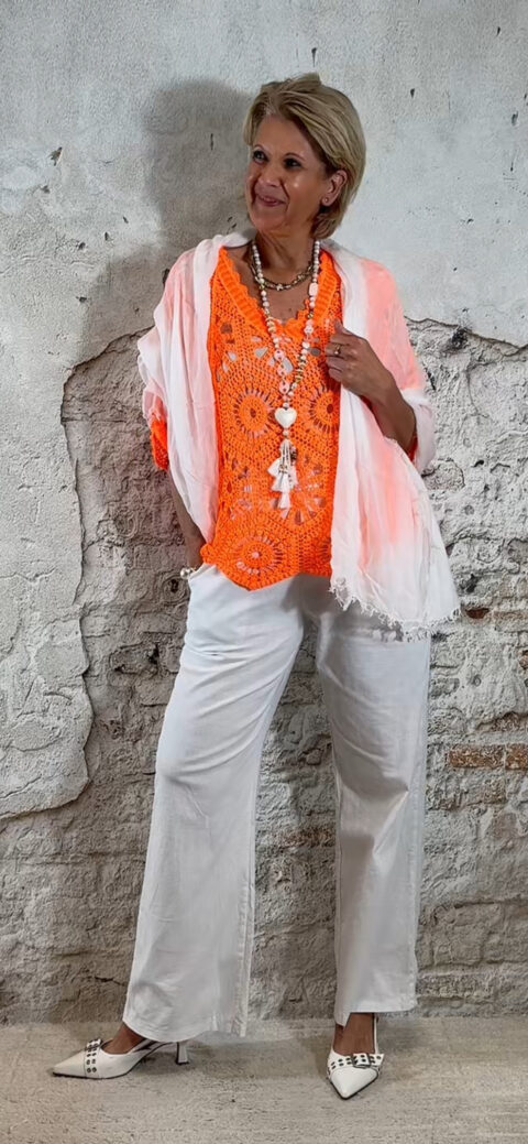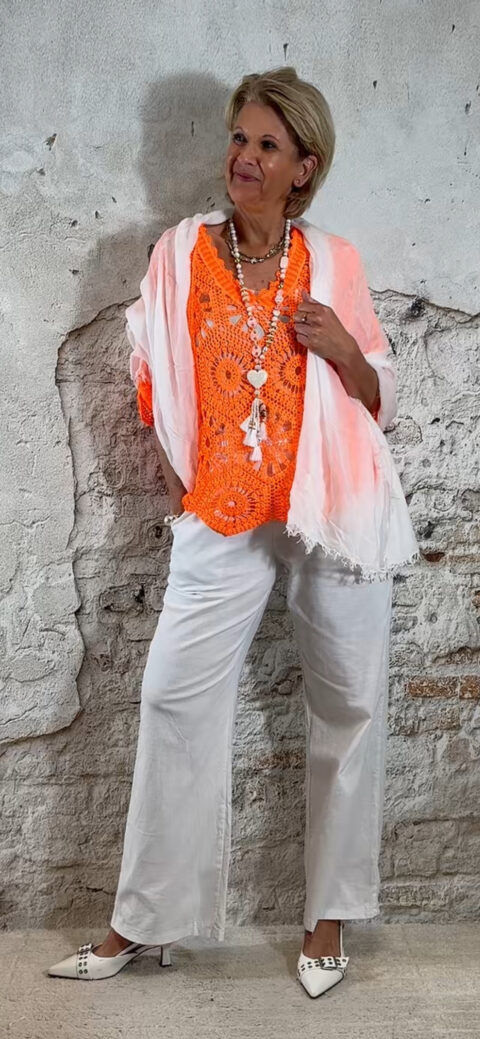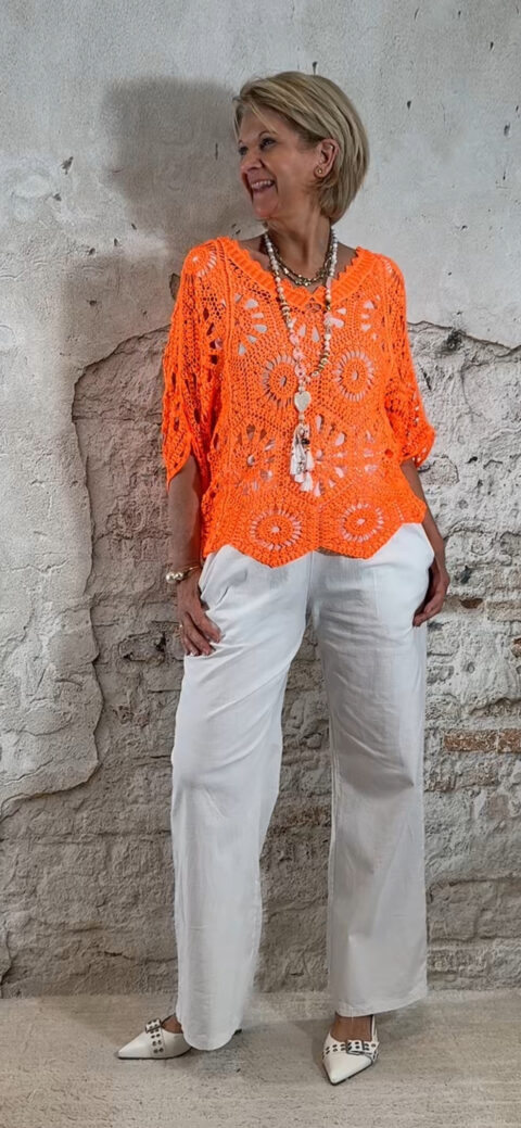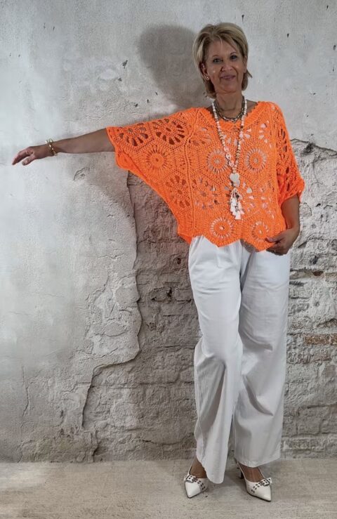 De Floor gehaakte vlindertop is luchtig, vrouwelijk en perfect voor zonnige dagen. Het vlindermodel valt soepel en geeft een speels silhouet dat mooi meebeweegt. De open gehaakte structuur zorgt voor een zomerse en elegante uitstraling.