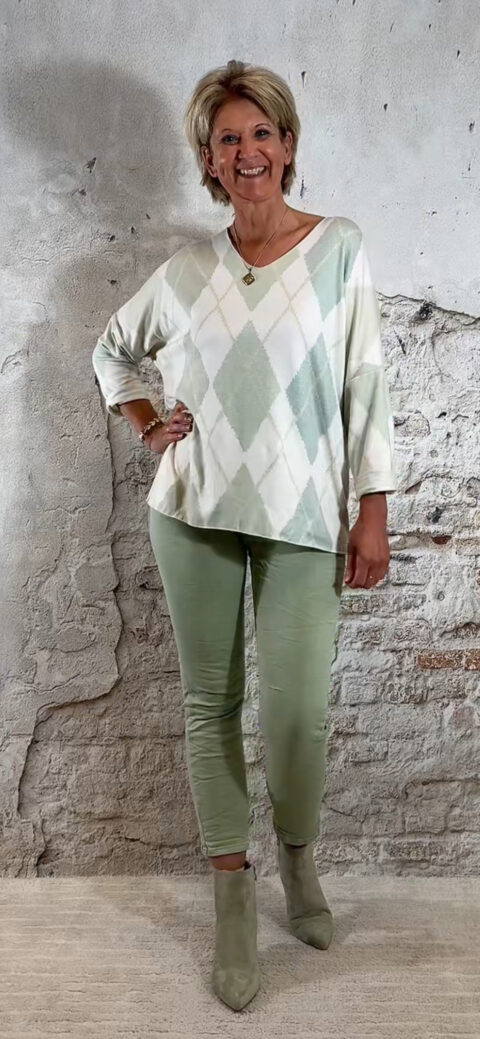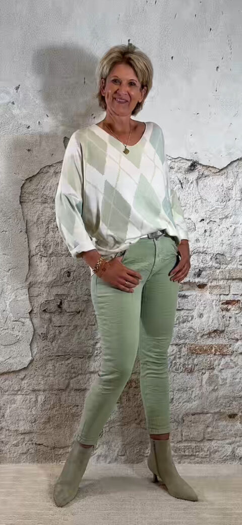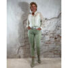 De lindegroene kleur geeft de jeans een moderne, gedragen look. Bij levering kan de stof wat gekreukt zijn, maar die kreuk verdwijnt vanzelf tijdens het dragen, na het wassen of met een korte strijkbeurt.