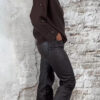 HS-5895-28. Leatherlook bootcut jeans bruin