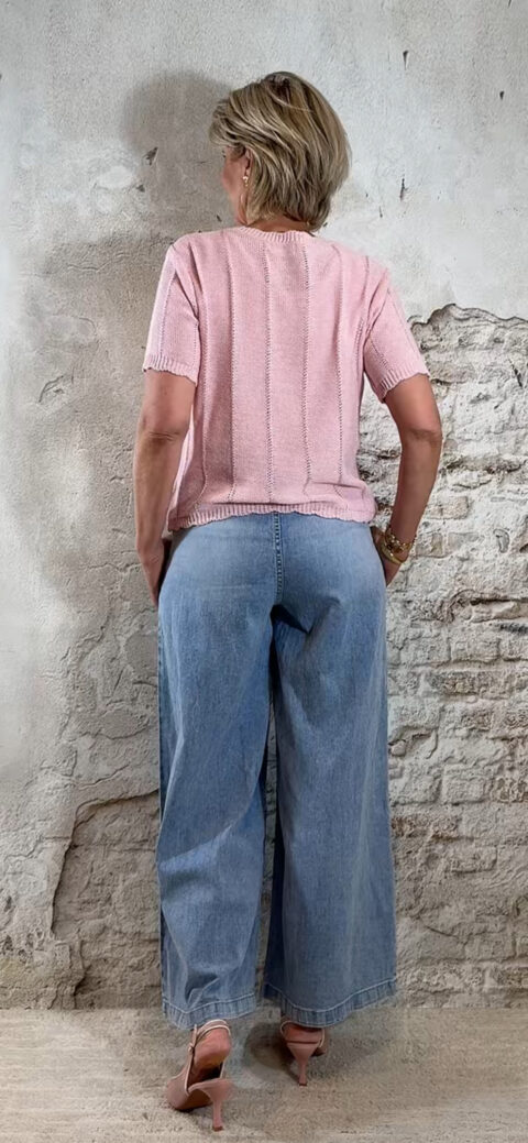 Dit gebreide truitje voor dames in roze is een fijne basic met een nette en vrouwelijke uitstraling. De rustige kleur maakt hem makkelijk te combineren en geschikt voor elke dag.