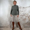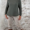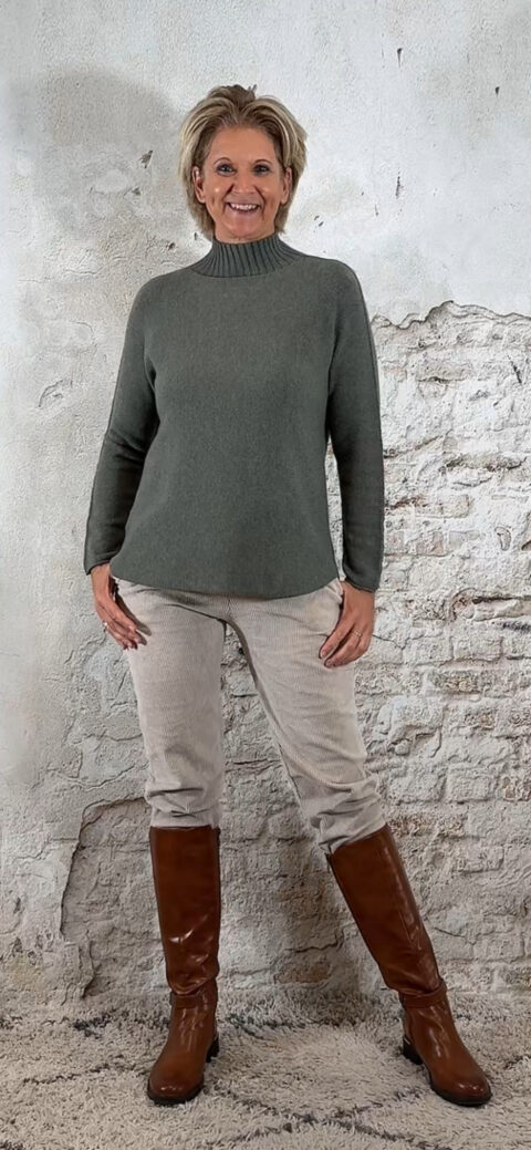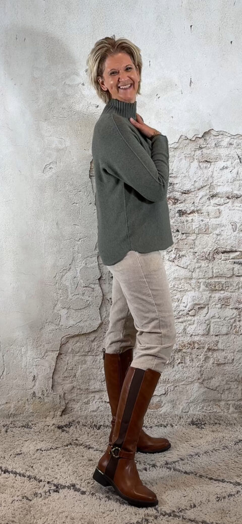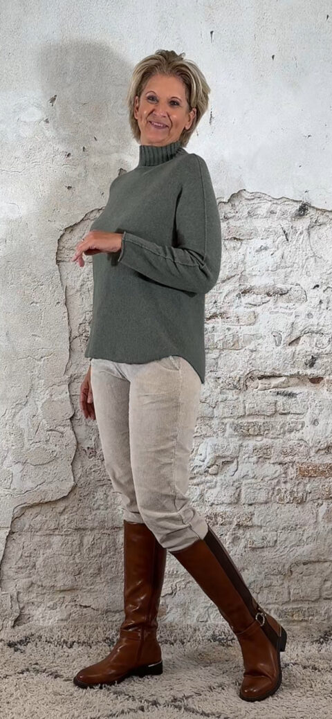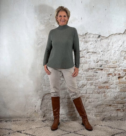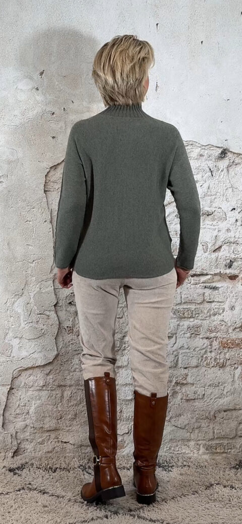 146568. LAATSTE 2! Len viscose mix turtle pullover olijfgroen.