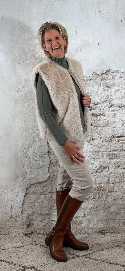 Gemaakt van een zachte viscosemix die soepel aanvoelt, ademend is en mooi in vorm blijft — ideaal voor dagelijks gebruik én perfect te combineren met vesten, blazers of bodywarmers.