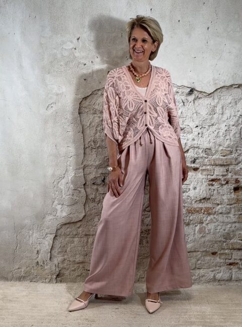 De Len wijde koord pantalon in oudroze is de perfecte mix van nonchalant en chic. Deze linnenlook broek heeft een ontspannen uitstraling maar oogt tegelijkertijd stijlvol en verzorgd. De doorgestikte elastische tailleband met koordsluiting zorgt voor extra comfort én een sportieve touch.