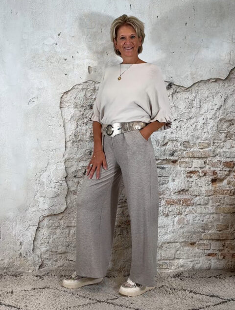 De Len wijde lounge broek in taupe is een comfortabele basic met een sportief-chique uitstraling. De stof is gemaakt van een zachte mix van viscose en polyester – soepel, ademend, vormvast én heerlijk zacht op de huid.