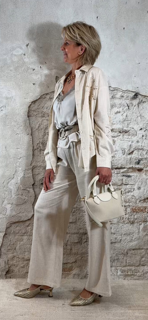 • 174722. Floor 2 delige Cotton/Linnen set: broek en blouse (8 april op voorraad, je kunt al bestellen)