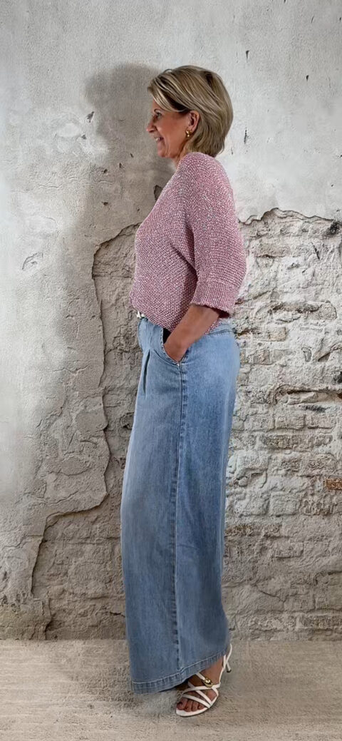 De vlindermouwen en 3/4 lengte maken de trui extra comfortabel en zorgen voor een mooie, losse valling. De v-hals geeft een elegante uitstraling en maakt hem makkelijk te combineren.