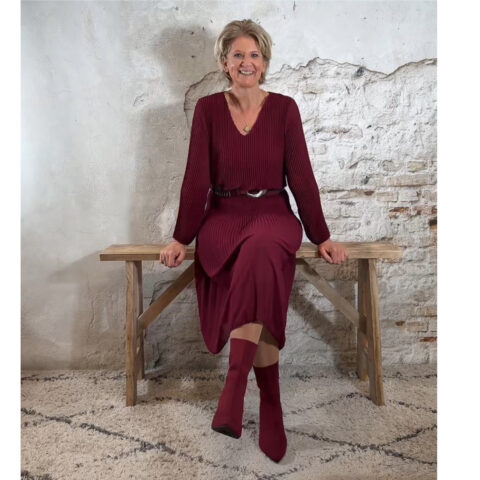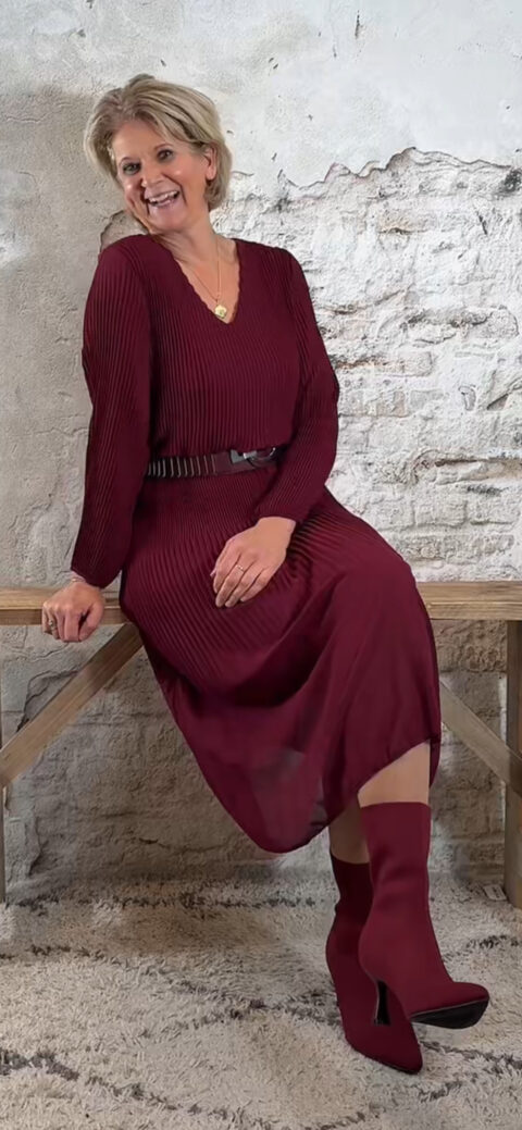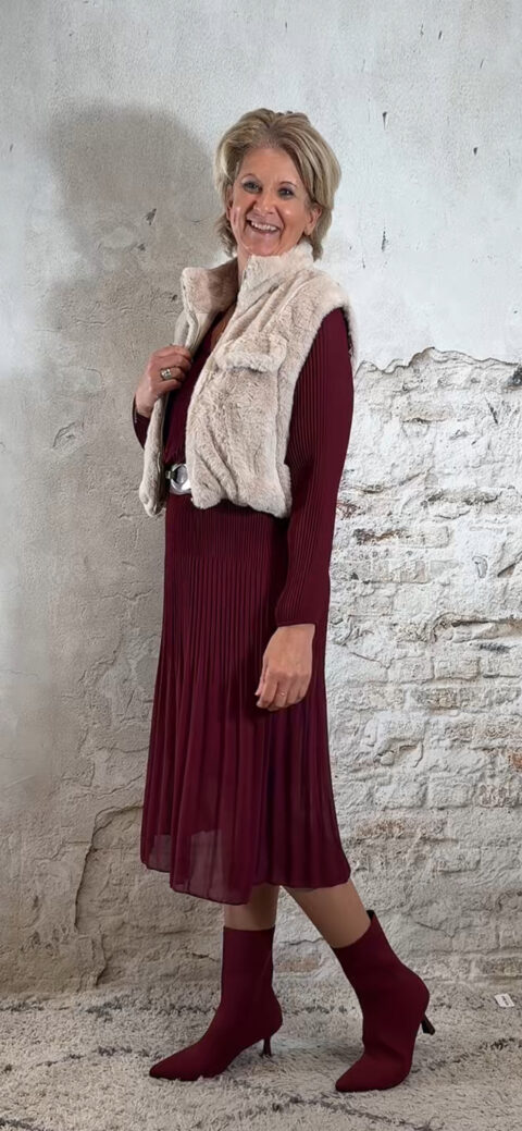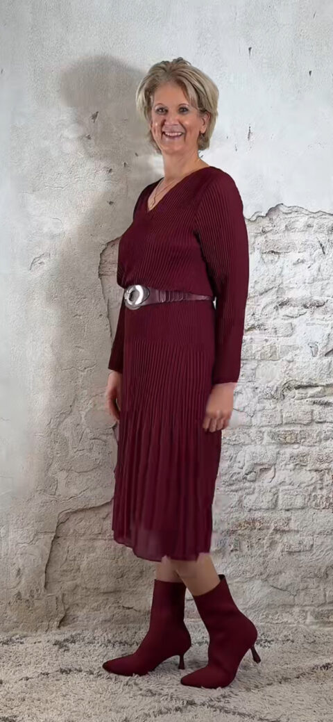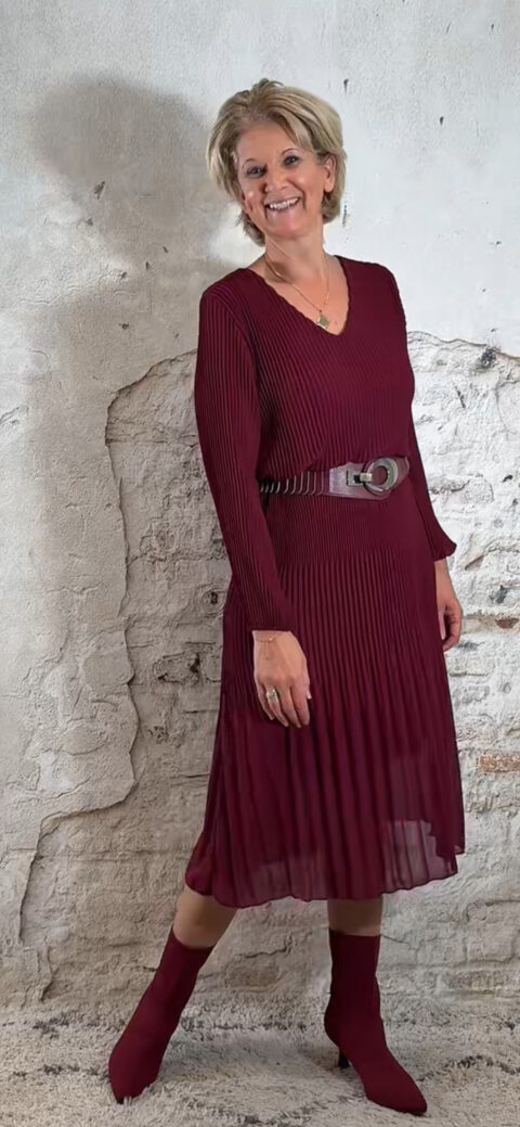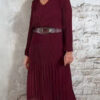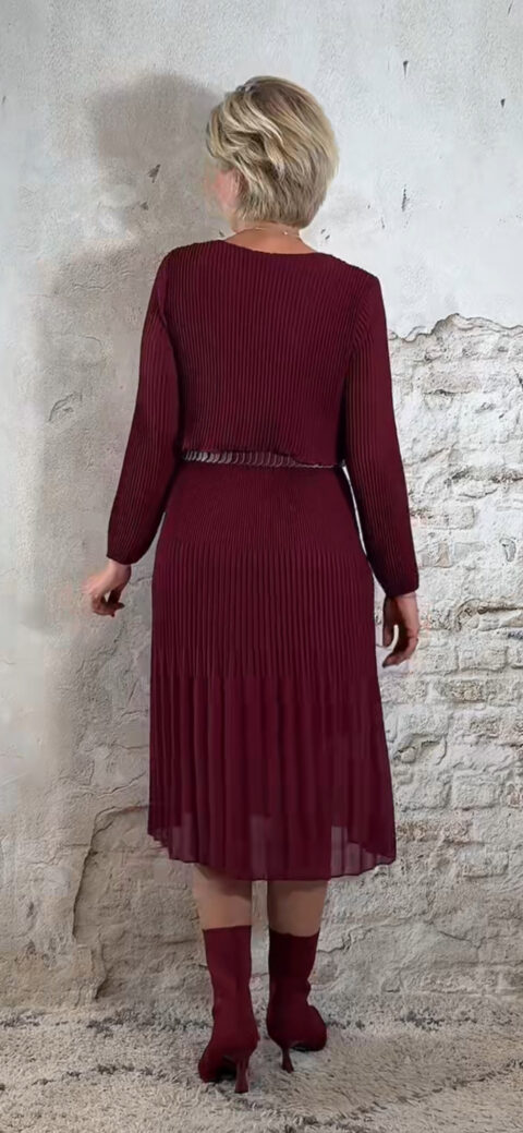 De Mara Plissé Jurk Bordeaux is een warme, chique en feestelijke jurk die ieder figuur prachtig laat uitkomen.
