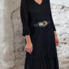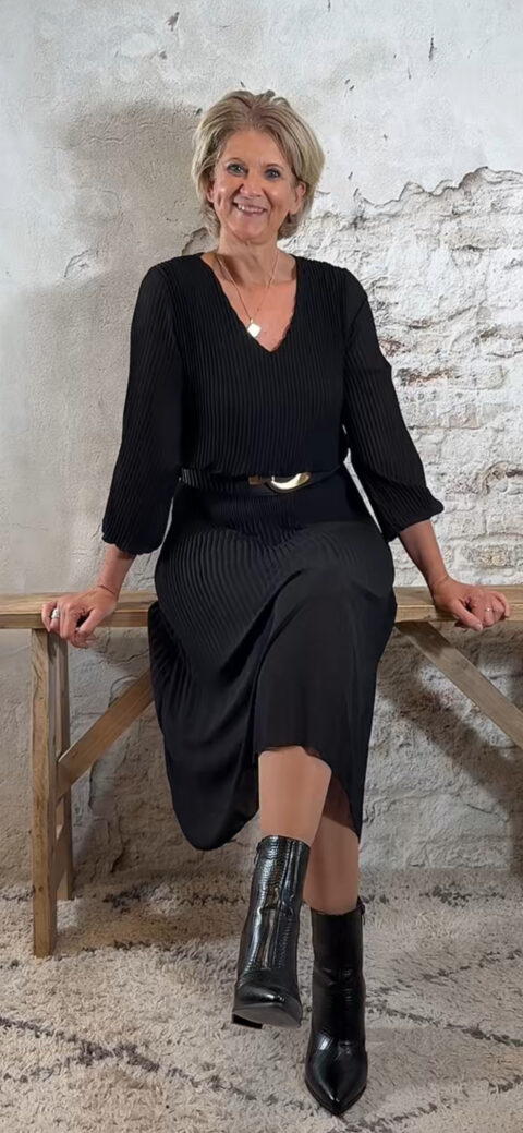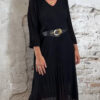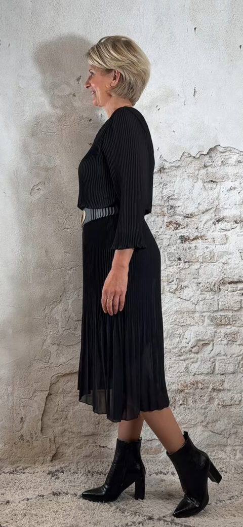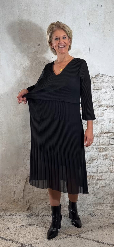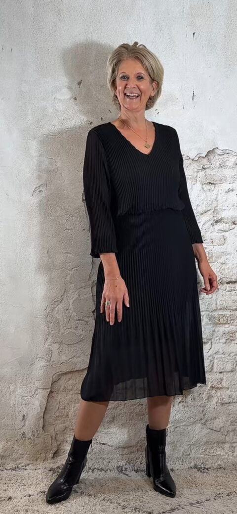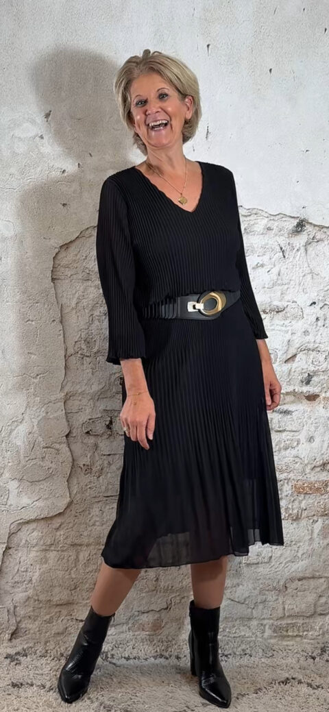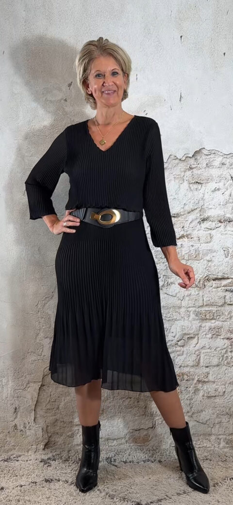 De Mara Plissé Jurk Zwart is een elegante, vrouwelijke jurk die perfect is voor de feestmaand én voor iedere gelegenheid waar je net wat extra wilt stralen.
