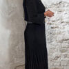 Dankzij de fijne plissé valt de stof mooi in waaiertjes, smal bij de top en richting de rok wat royaler — superflatterend voor elk figuur.