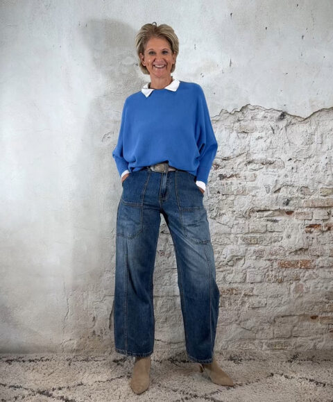 Een ballon jeans heeft juist meer ronding aan de bovenkant van het been en loopt sterker taps toe naar de enkel, waardoor hij een speels en vrouwelijk ballon-effect krijgt.