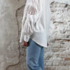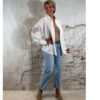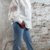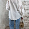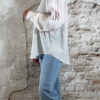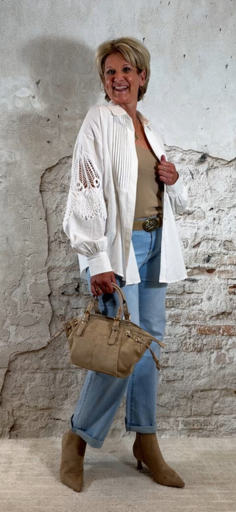 De zijkanten hebben een ronde split en de blouse valt over de billen, waardoor hij zowel los als op een strakkere broek heel mooi staat. Ook leuk om open te dragen met een top eronder voor een gelaagde look.