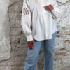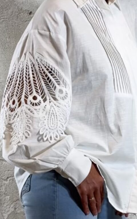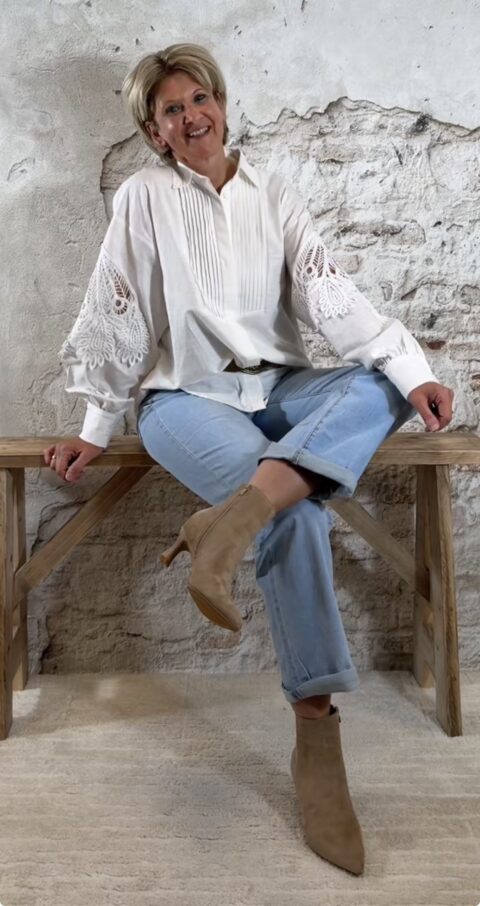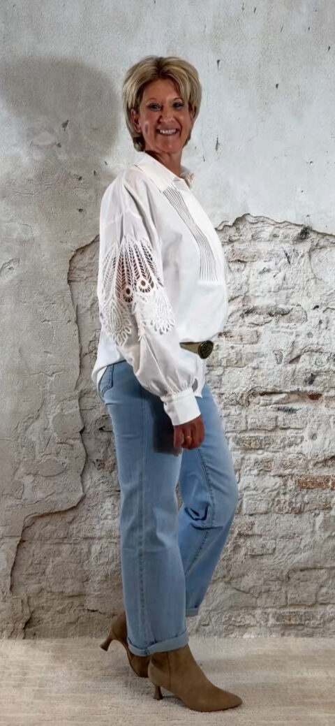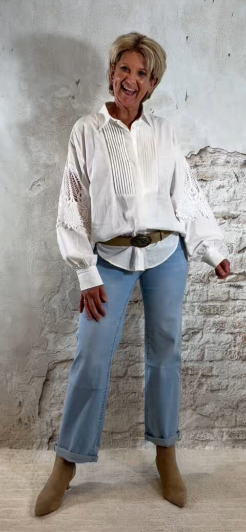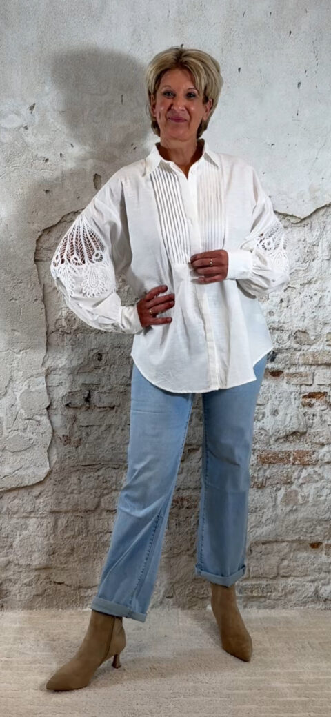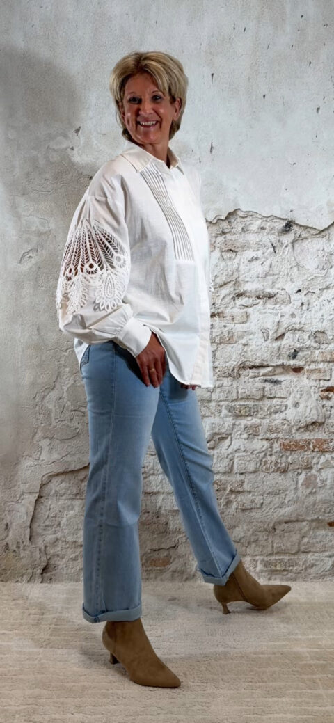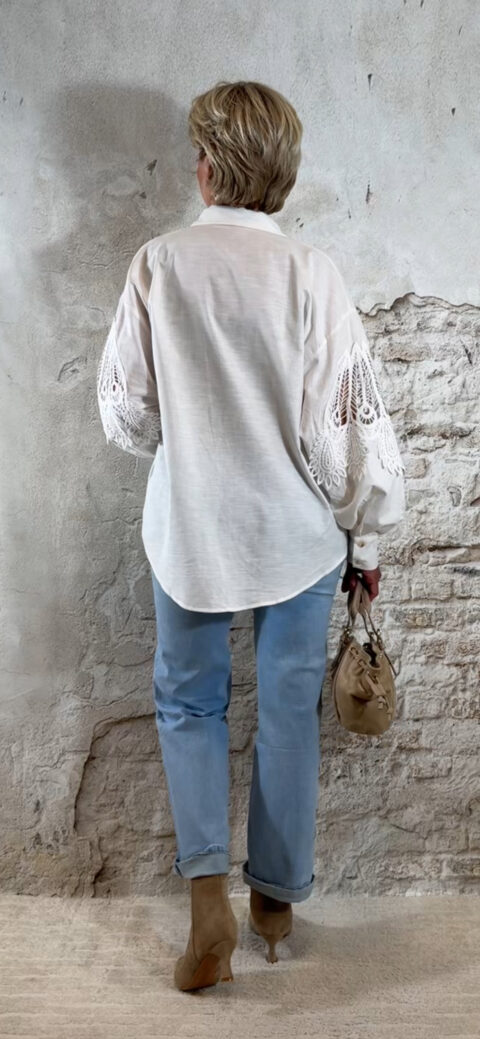 De Nana oversized blouse met kanten mouw is een luchtige, vrouwelijke blouse met een mooie mix van stoer en verfijnd. Het wijdvallende model draagt heerlijk comfortabel en valt soepel over het lichaam. De opengewerkte kanten mouwen geven de blouse een elegante uitstraling en maken dit item echt bijzonder.