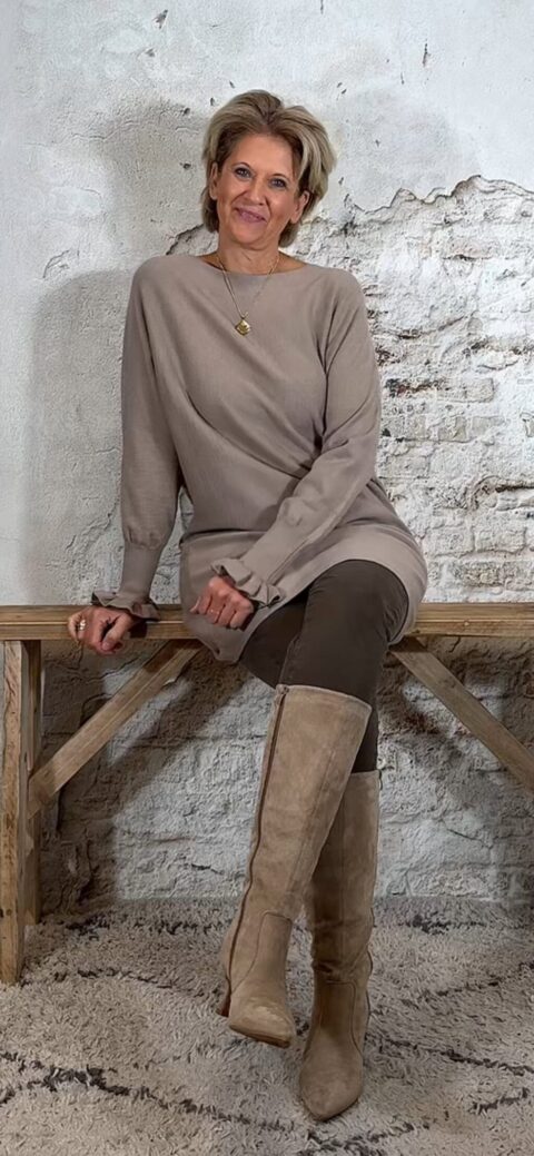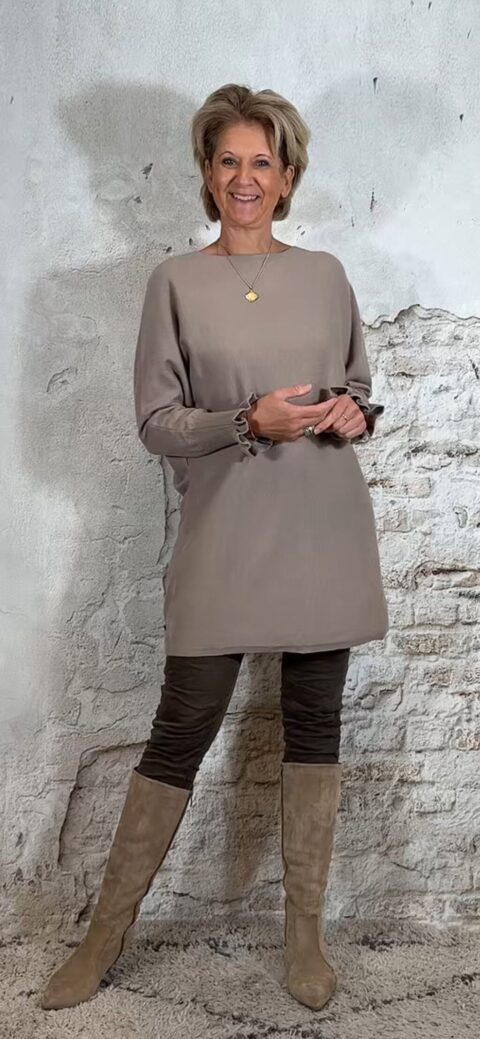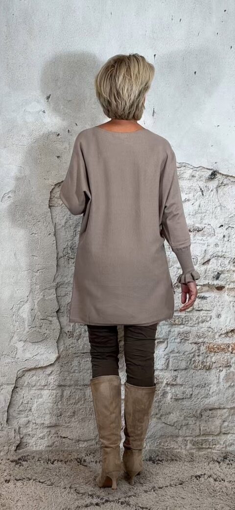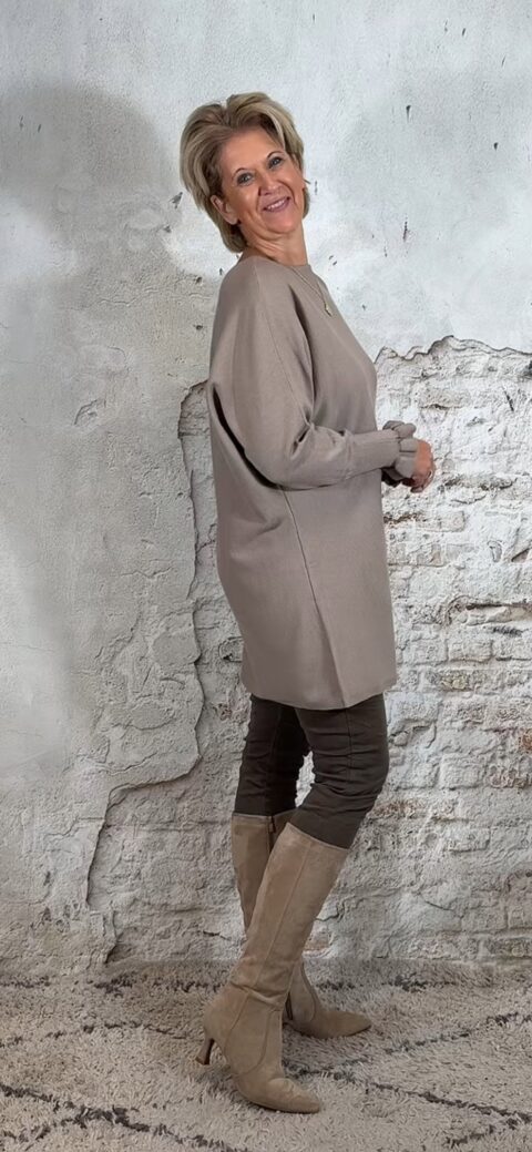 Bestel de tuni-trui in taupe: Klik Hier