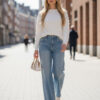MC-7333 Wide leg jeans elastische taille light blue – OUTLET!