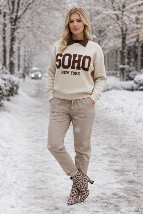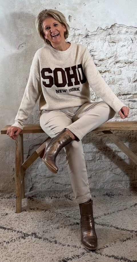 Deze gebreide trui met applicatie is zó’n fijne: warm, zacht en zonder wol.