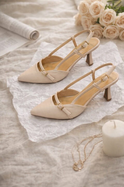 De slingback pump in licht zalmroze is een elegante en vrouwelijke pump met een verfijnde uitstraling. De zachte licht zalmroze kleur geeft de schoen een frisse en stijlvolle look die prachtig combineert met zowel lichte als neutrale outfits.