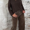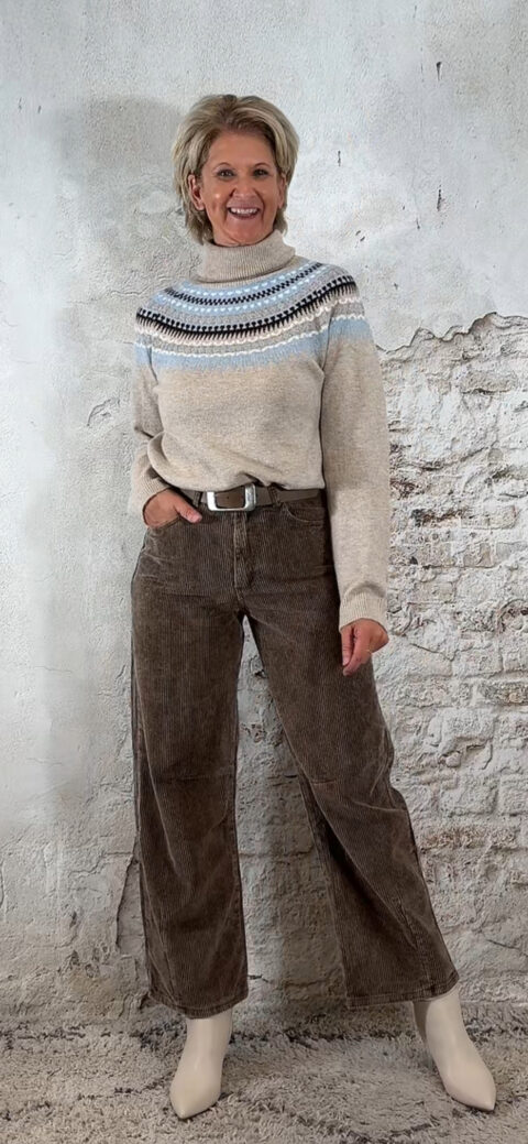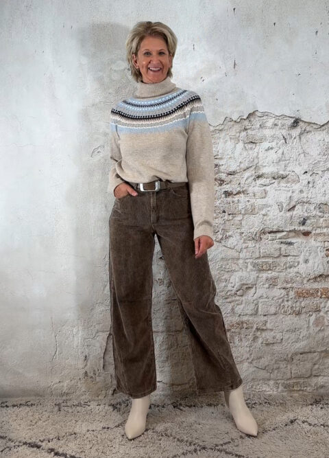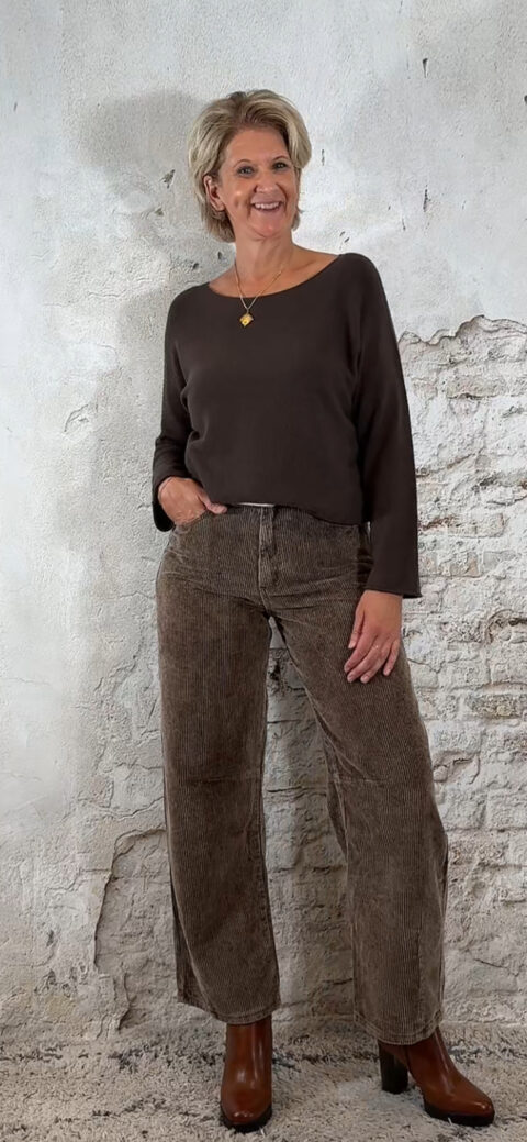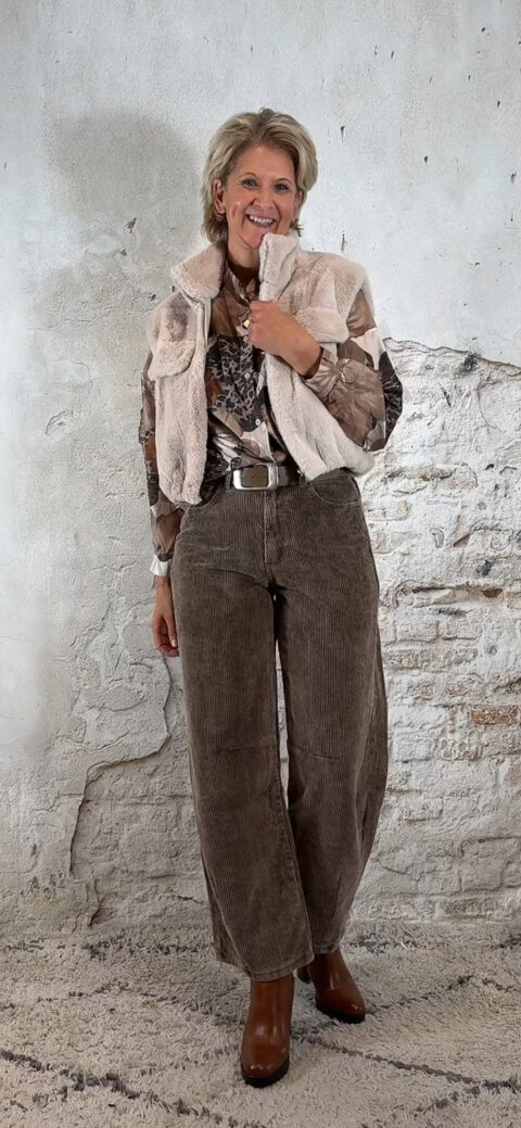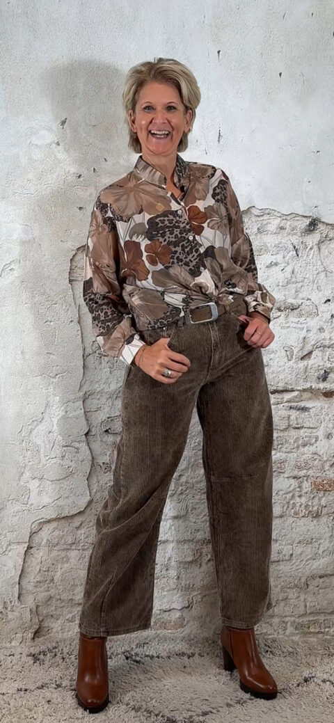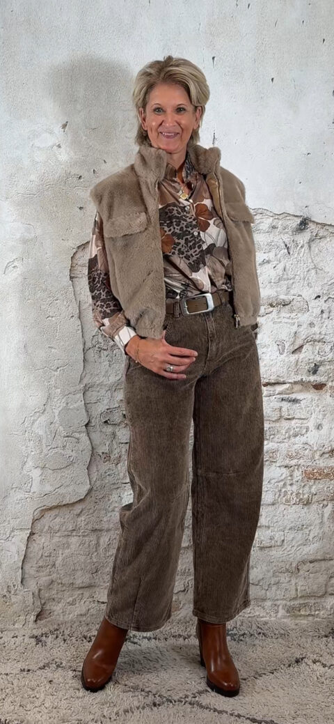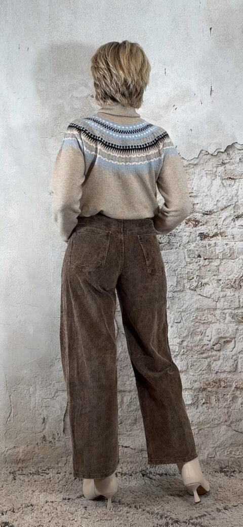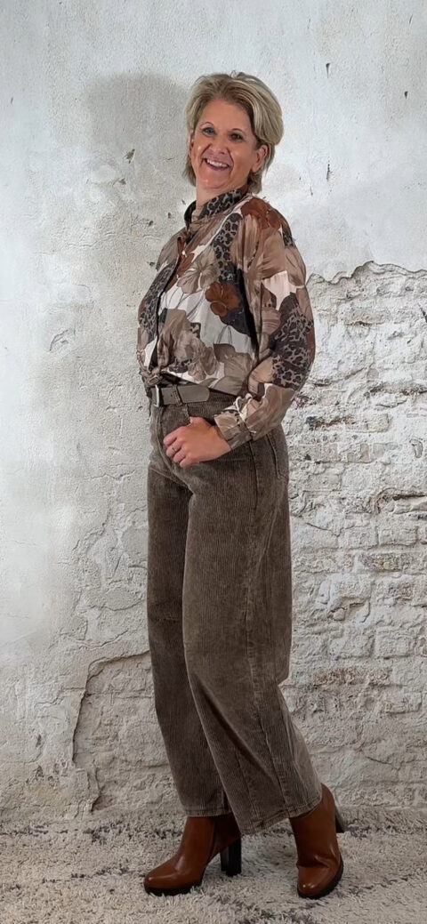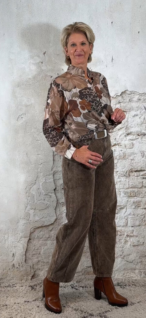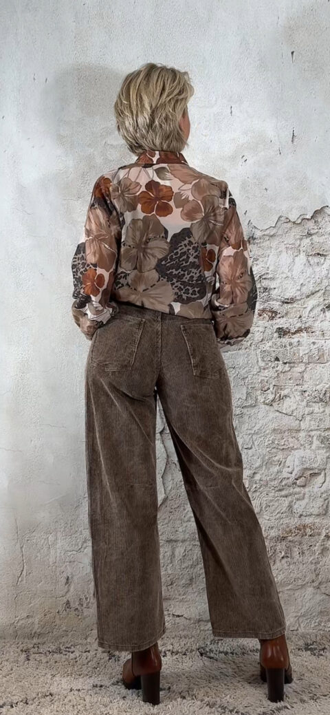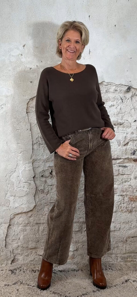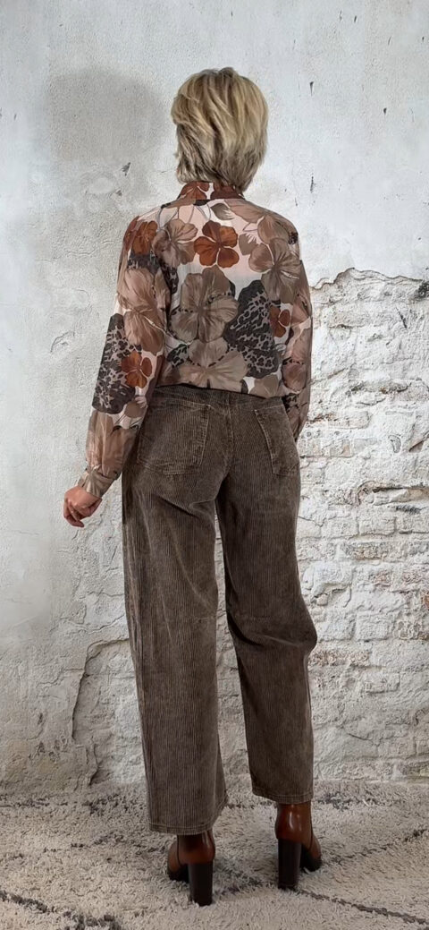 De zachte ribstof geeft de broek een chique uitstraling, terwijl het coupnaadje onderaan ervoor zorgt dat de pijp subtiel naar binnen valt. Daardoor krijgt de broek die kenmerkende ballonvorm met een vrouwelijk, modieus effect.