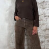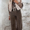 Rib ballon broek met coupnaadje onderaan voor een elegante pasvorm.