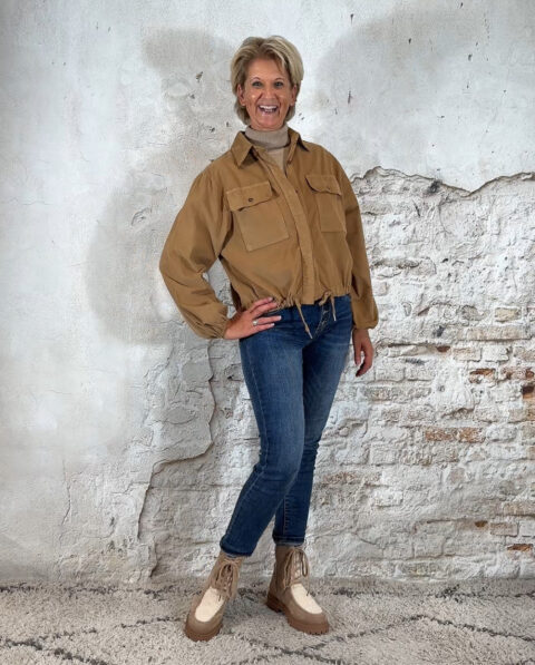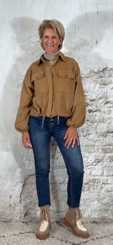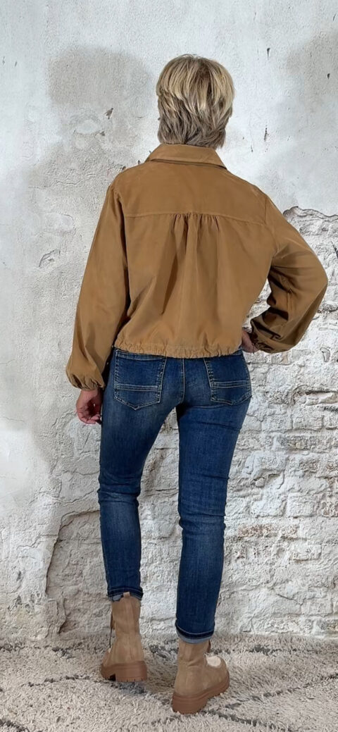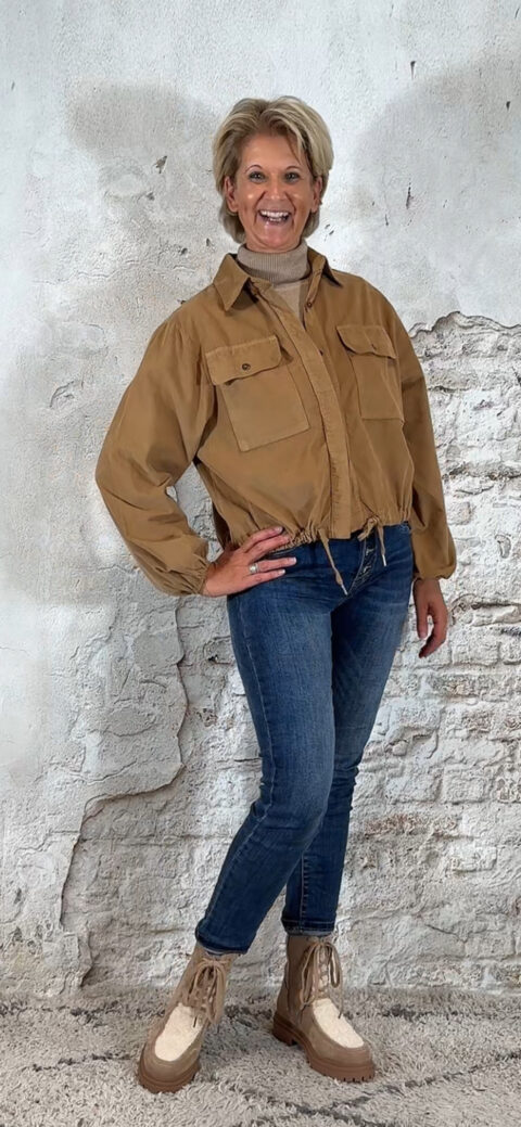 De blinde knoopsluiting geeft een nette afwerking, terwijl de elastische zoom in de mouwen en de opgestikte zakken zorgen voor een casual uitstraling. Onderaan heeft de blouse een koord dat je los kunt laten voor een relaxte fit, of strak kunt aantrekken om hem mooi te laten blousen.