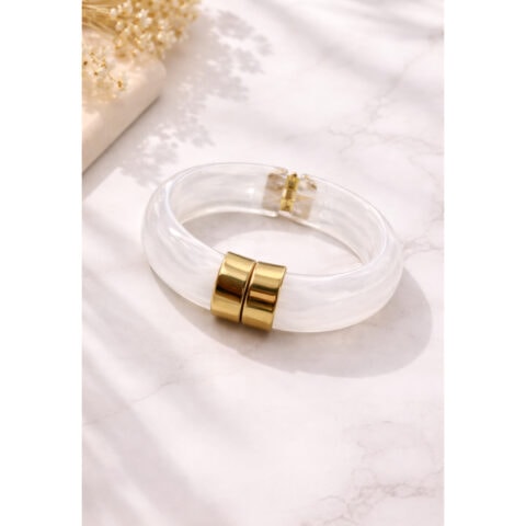 De Sil armband canica wit is een luxe armband met een elegante en moderne uitstraling. De armband bestaat uit kralen met een marmerlook in wit en transparant, gecombineerd met subtiele goudkleurige details.