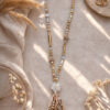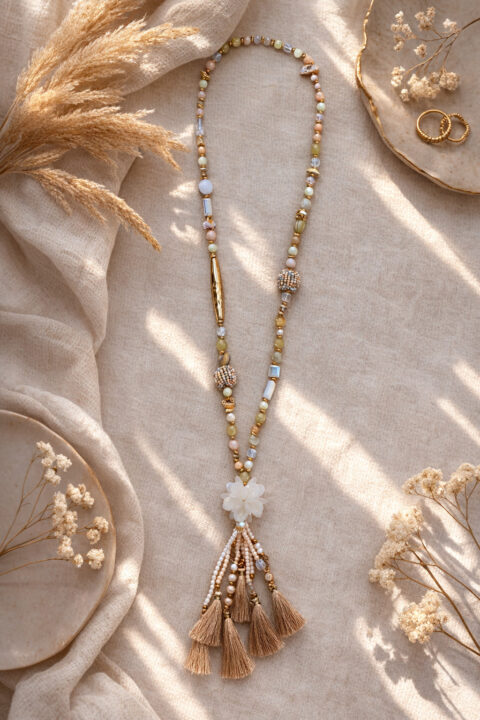 Het zijn lange kettingen die mooi over een blouse, jurk of pullover vallen. Door de lengte creëren ze een slank silhouet en geven ze een nonchalante, bohemian uitstraling. De verschillende kralen en bedels maken elke ketting uniek en levendig.