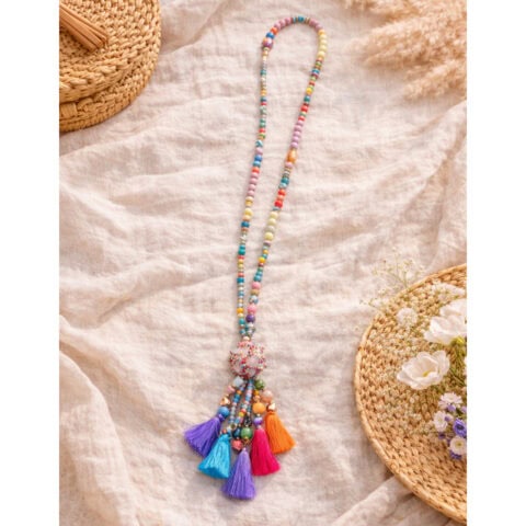 Het zijn lange kettingen die mooi over een blouse, jurk of pullover vallen. Door de lengte creëren ze een slank silhouet en geven ze een nonchalante, bohemian uitstraling. De verschillende kralen en bedels maken elke ketting uniek en levendig.