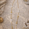 Het lange model valt mooi over een blouse, pullover of jurk. Door de combinatie van goud en beige krijgt de ketting een warme, romantische look. Een perfect accessoire om een basic outfit nét dat beetje extra te geven.