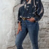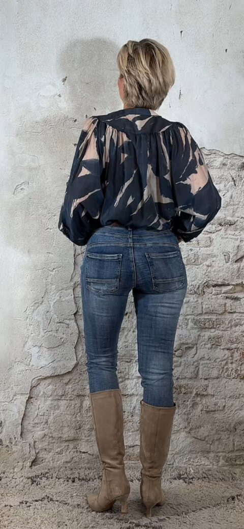 146587. Evy vlinder blouse donkerblauw print (14 oktober weer op voorraad, je kunt al bestellen)