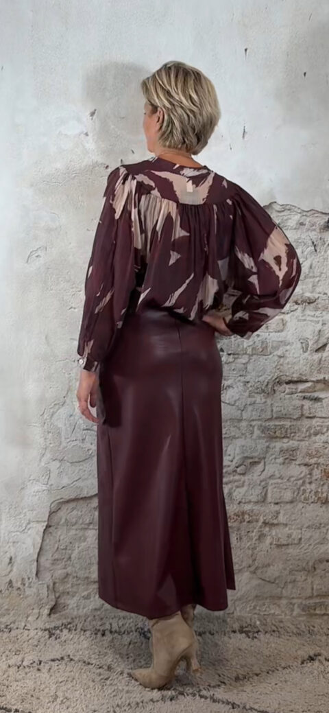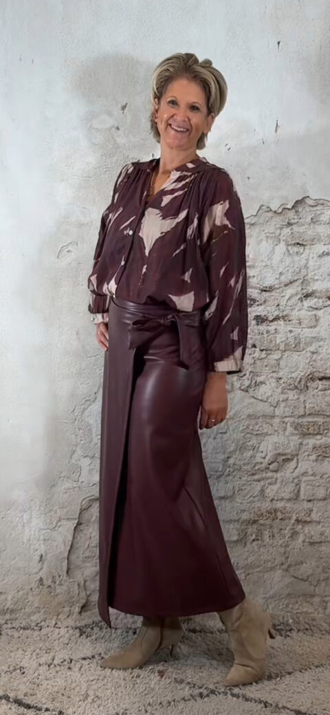 • 147458. Evy leatherlook maxi rok bordeaux - S/M