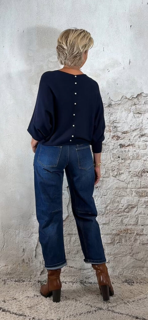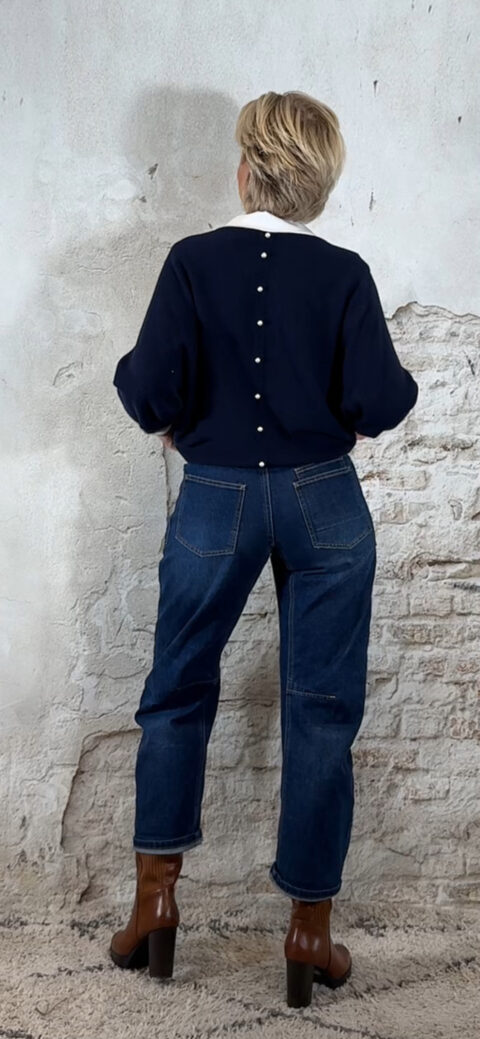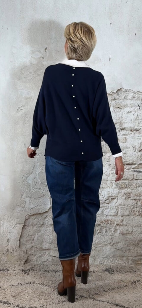 138669. LAATSTE! Elza vlindertrui met pareltjes achter donkerblauw
