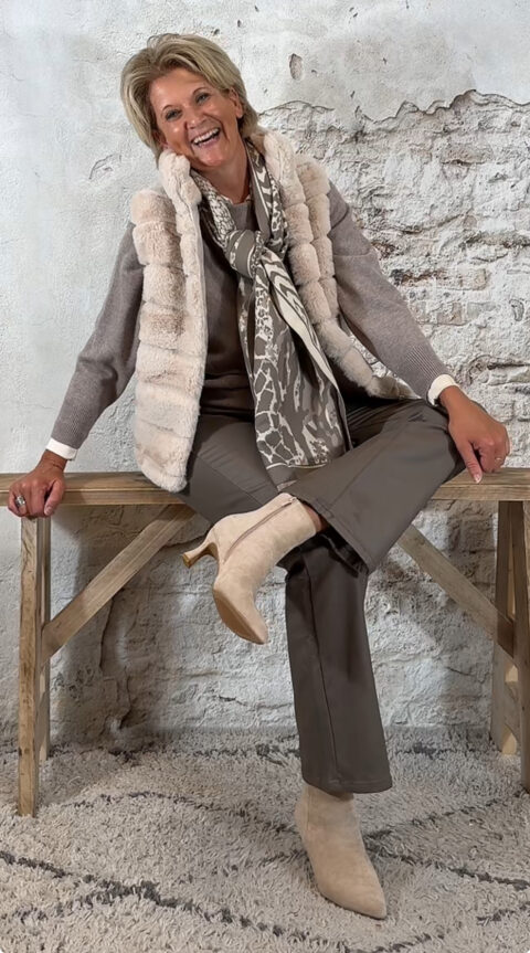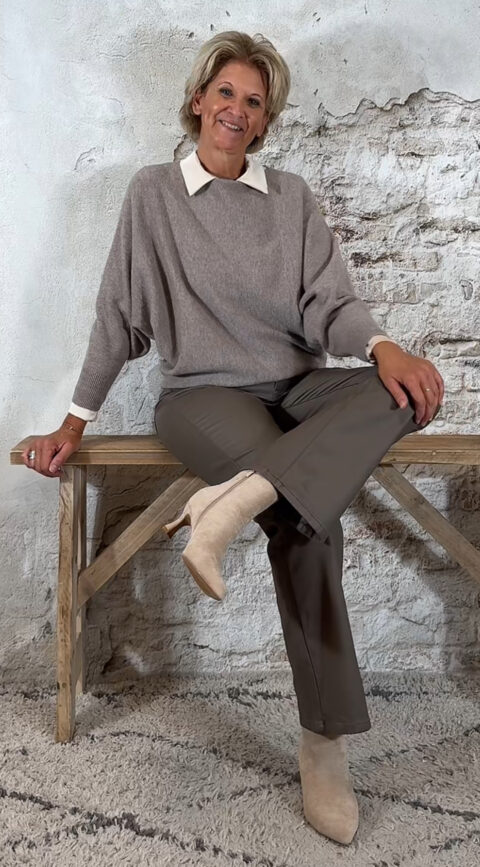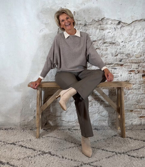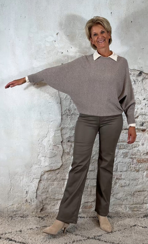 138665. Elza vlindertrui met pareltjes achter taupe