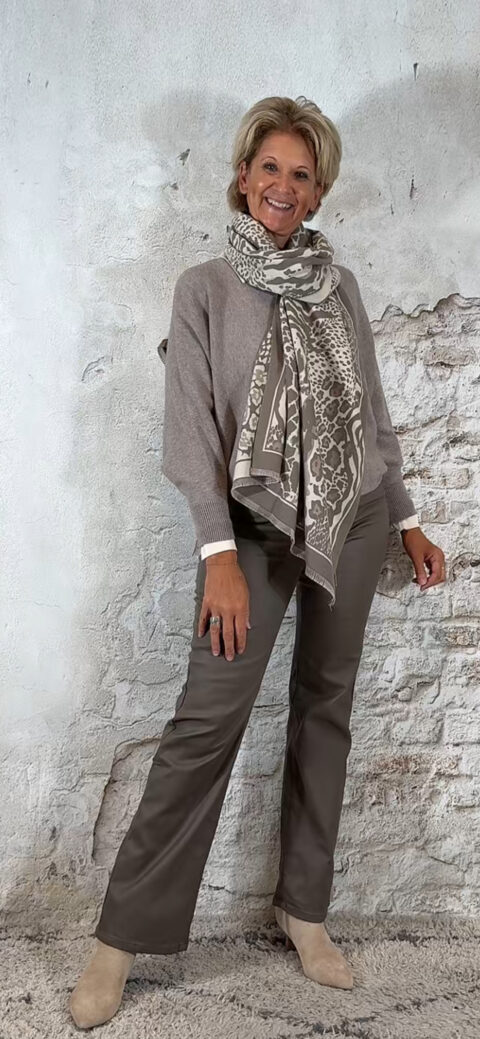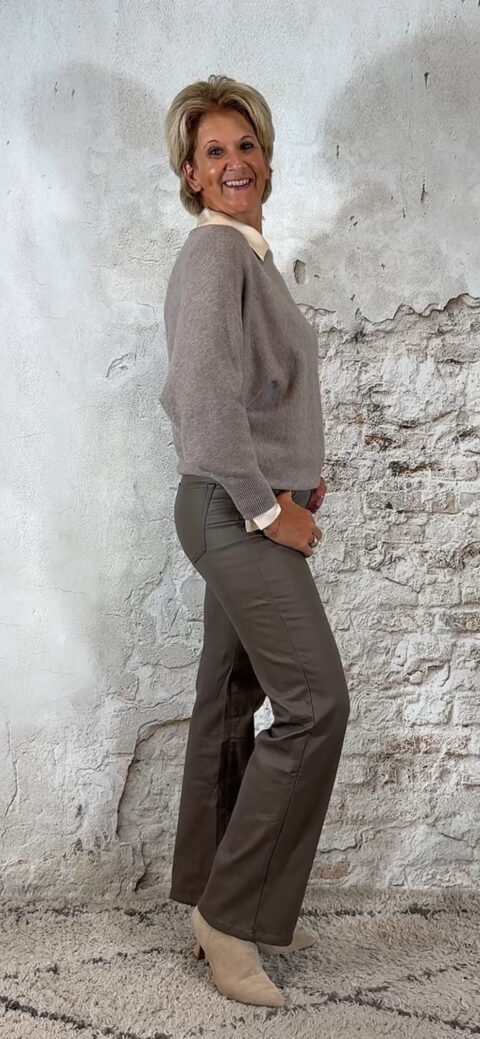• 138983. Leatherlook bootcut jeans taupe