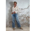 De MC-5357 wide leg jeans in lichtblauw is een moderne, luchtige denim die supercomfortabel draagt. Het dunnere materiaal voelt zacht en soepel aan, terwijl de stretch ervoor zorgt dat de broek mooi in model blijft. De wijde pijpen vallen elegant langs het been en geven de jeans een trendy, vrouwelijke uitstraling.
