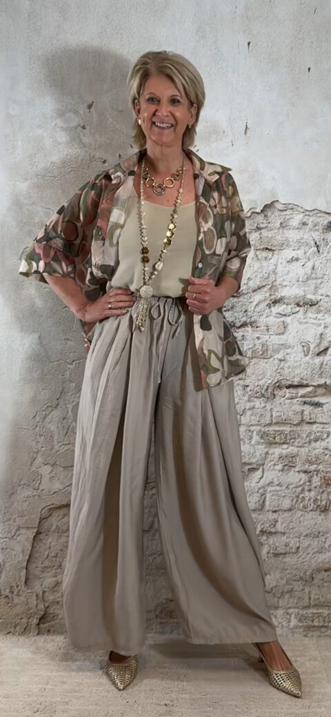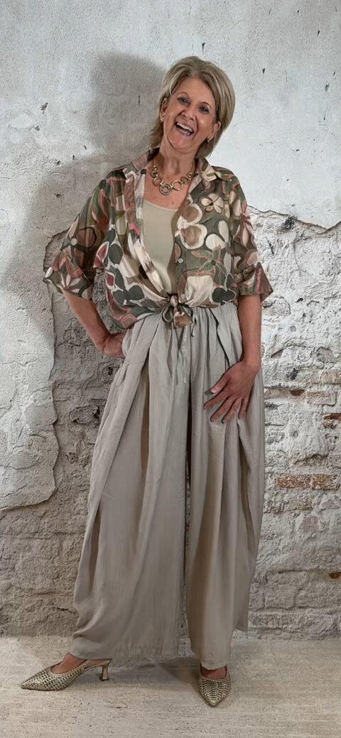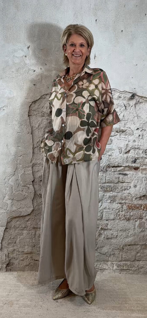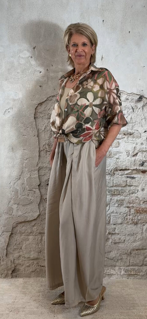 • Zijde look blouse dames bloemenprint khaki hoe valt en styling