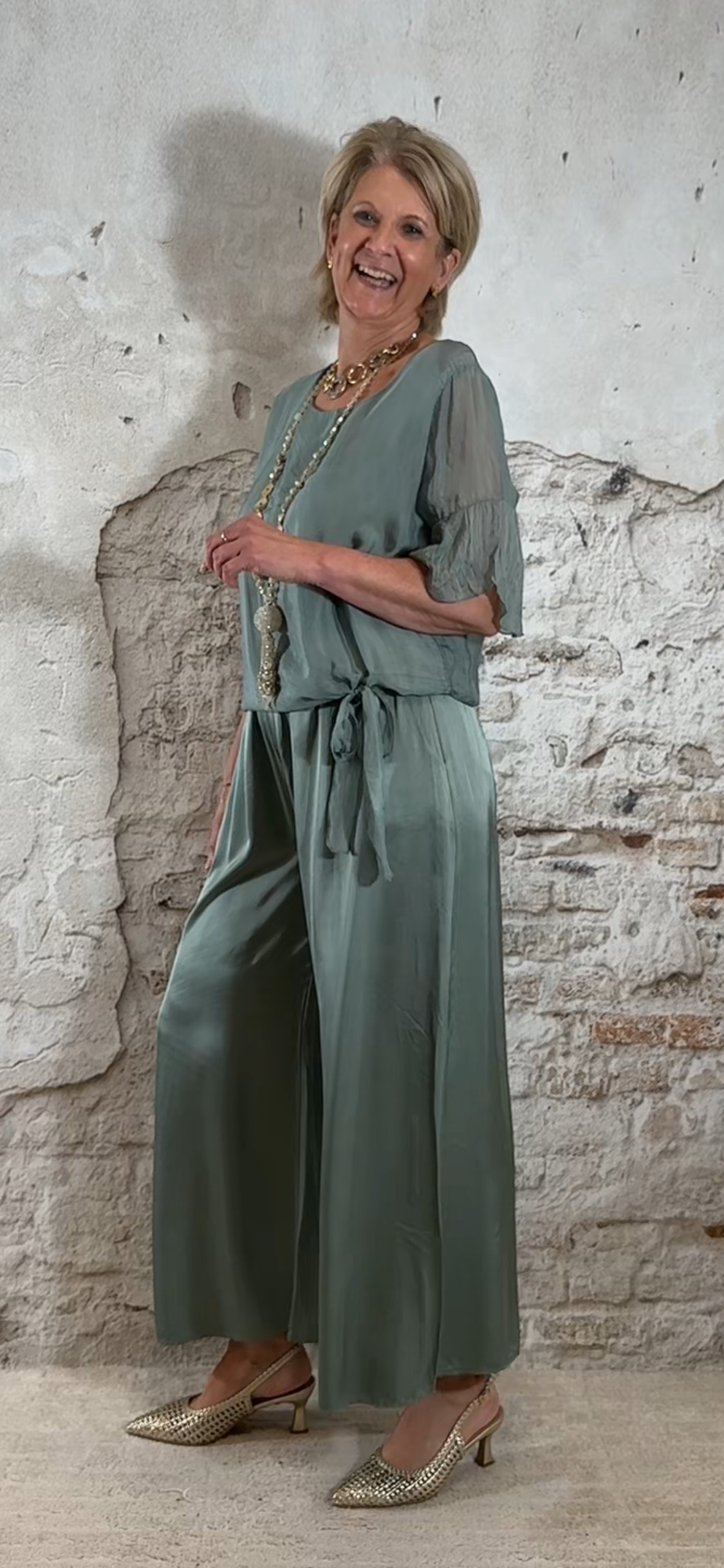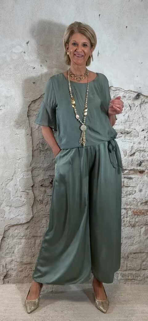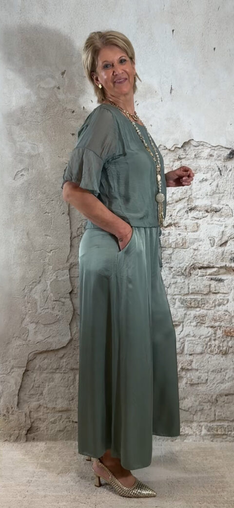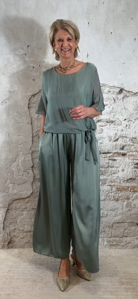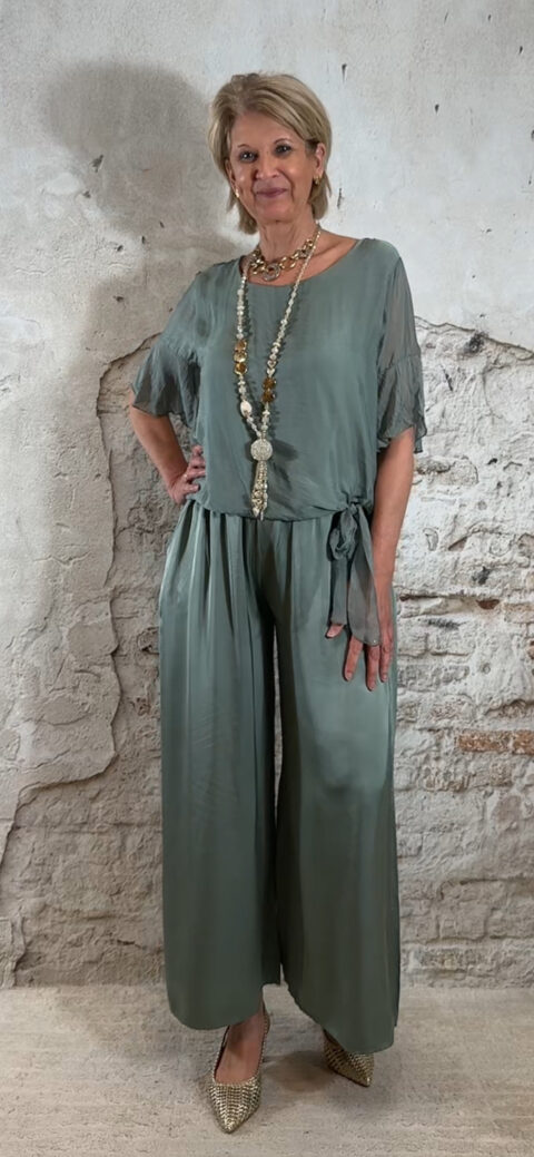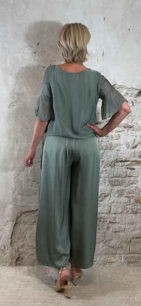Perfect voor een etentje, dagje weg of een comfortabele maar stijlvolle dames outfit. Past heel mooi samen met de zijden knooptop khaki floor.