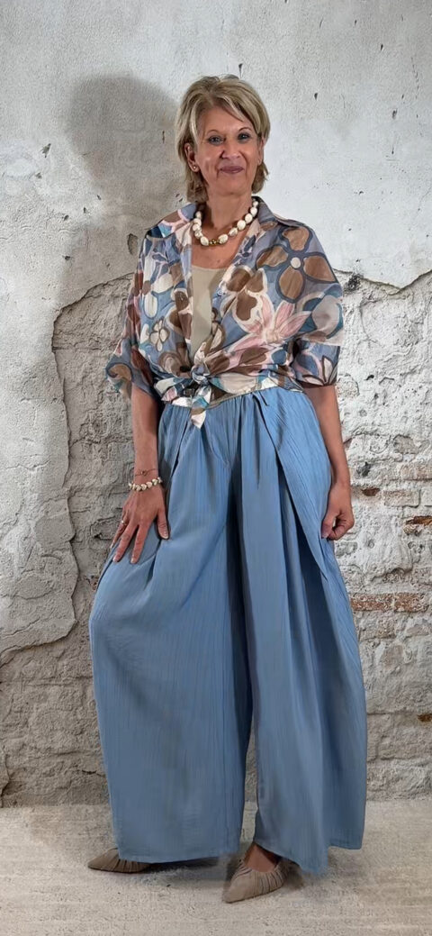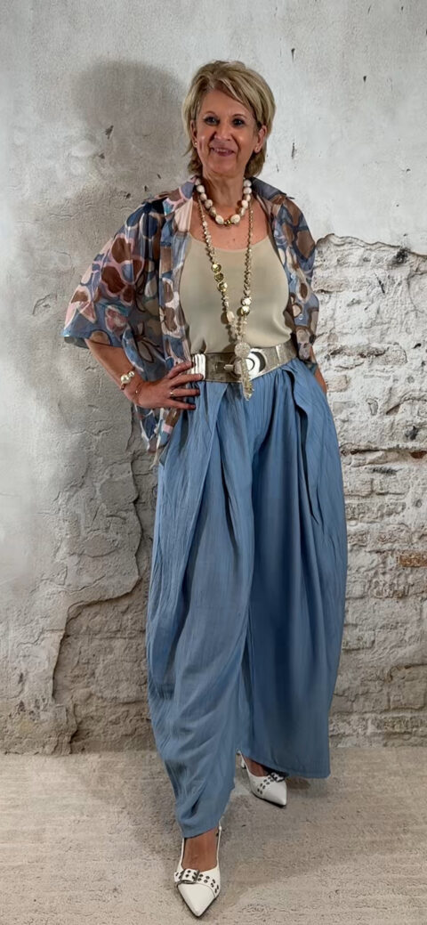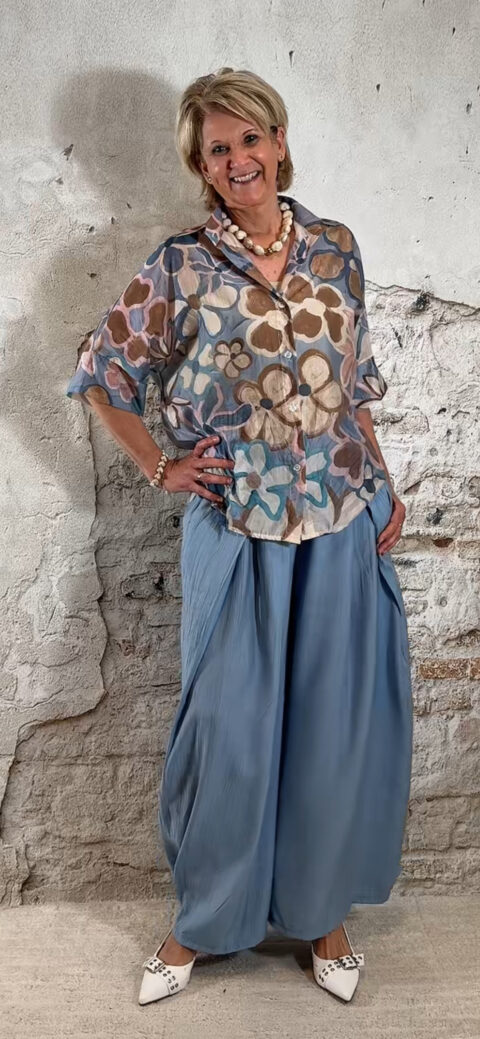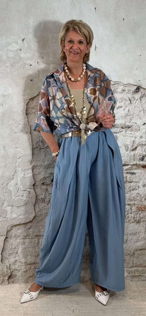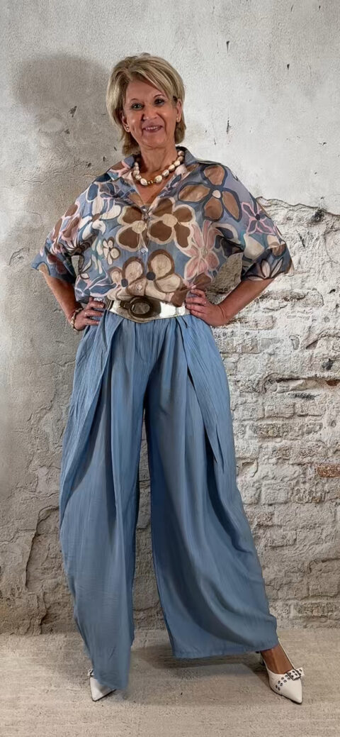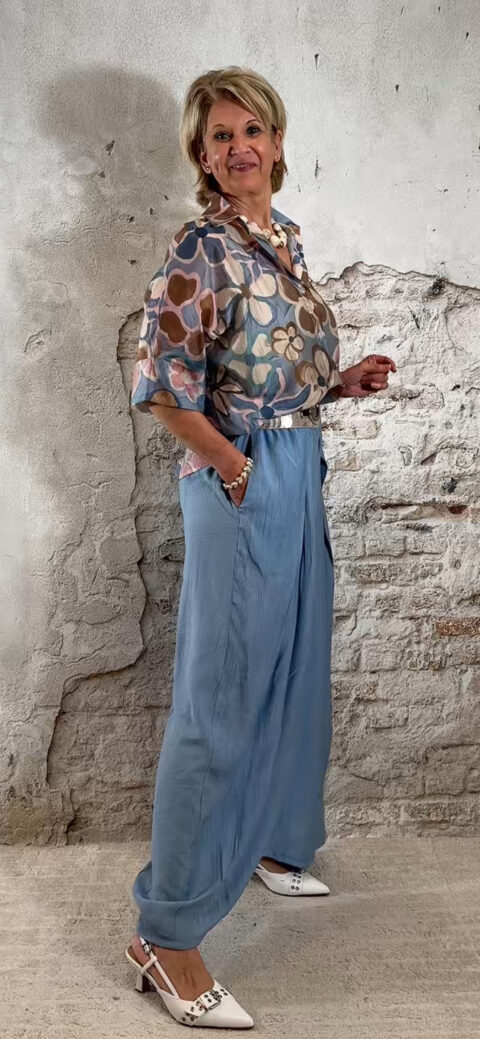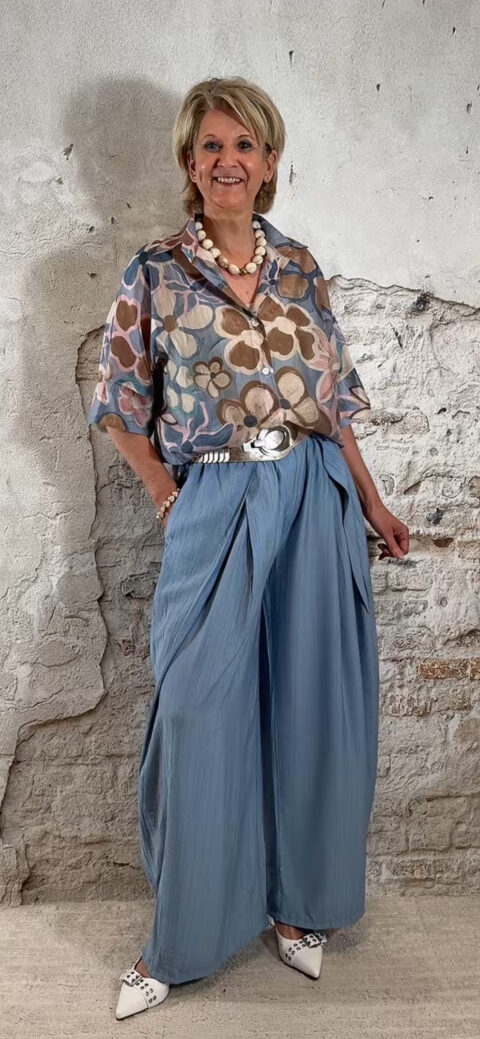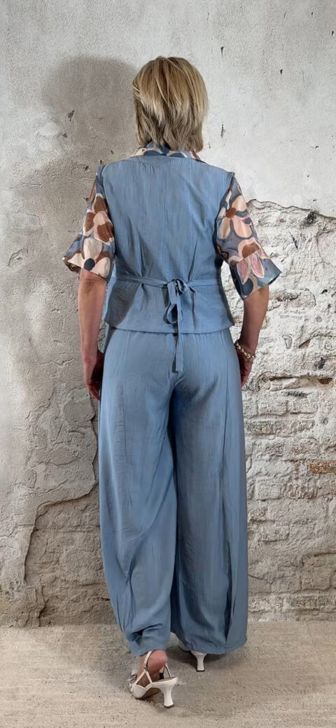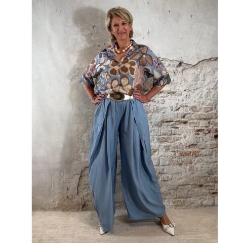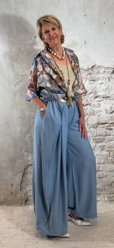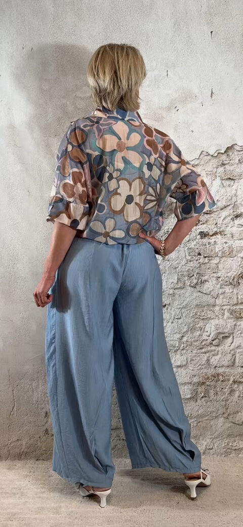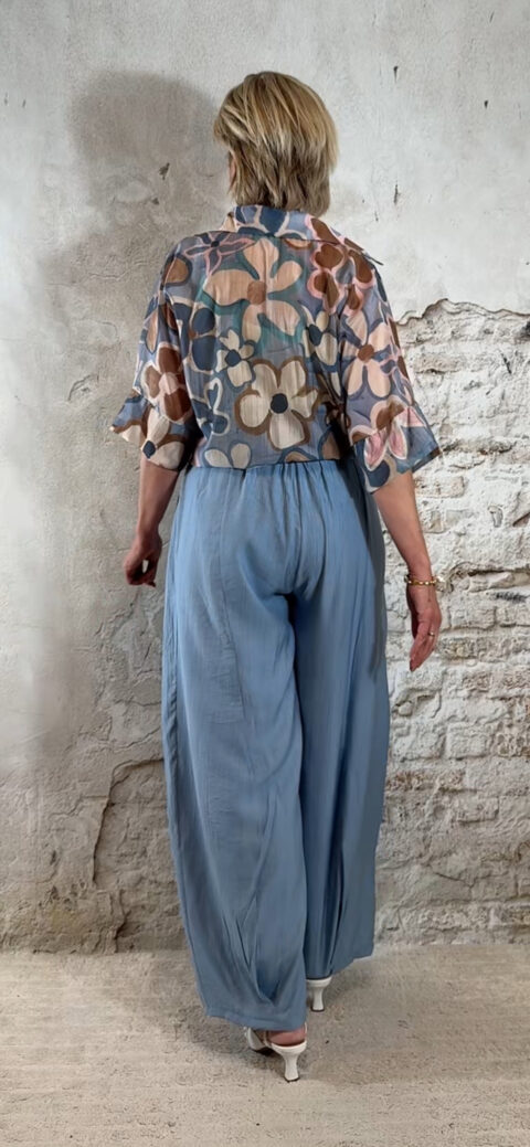 Perfect voor een zomerse dag, vakantie of een casual chique outfit. Combineer met een crepe broek met overslag in jeansblauw voor een stijlvolle en comfortabele dames look.