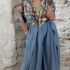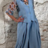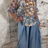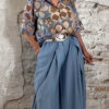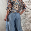 De blouse heeft een klassieke kraag en knoopsluiting, wat hem extra veelzijdig maakt. Draag hem dichtgeknoopt als blouse of open als een luchtig blousevest met een top eronder. Je kunt hem zelfs korter stylen als een soort bolero voor een speelse twist.