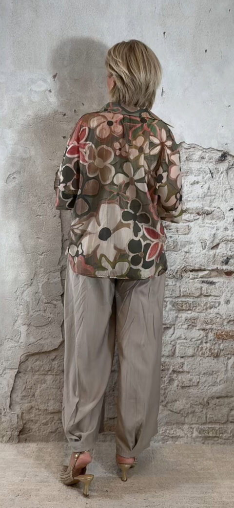 Zijde-look blouse bloemenprint khaki/roze/beige Evy